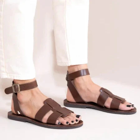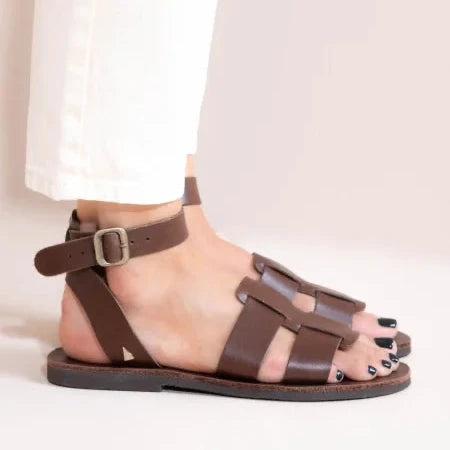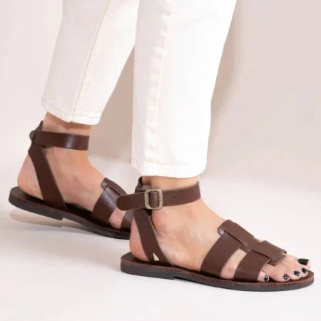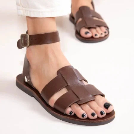 Monte Brun Γυναικεία Δερμάτινα Σανδάλια Καφέ