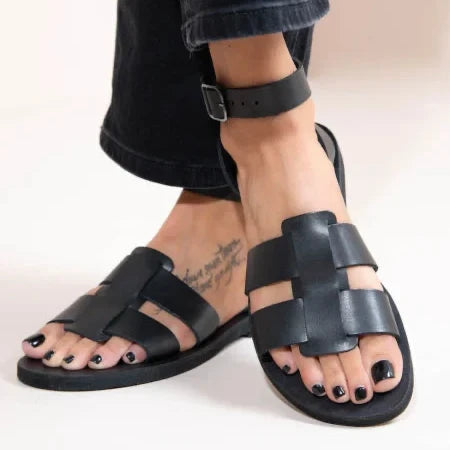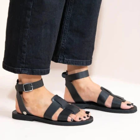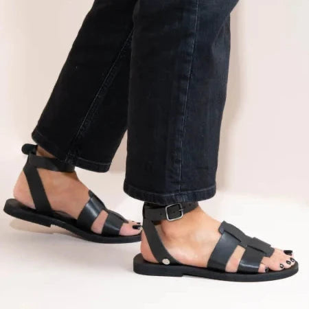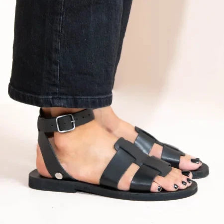 Monte Noir Γυναικεία Δερμάτινα Σανδάλια Μαύρα