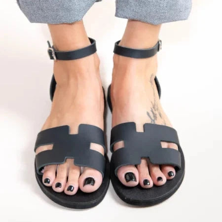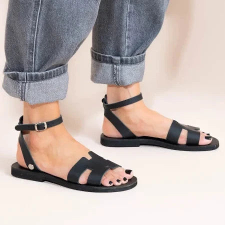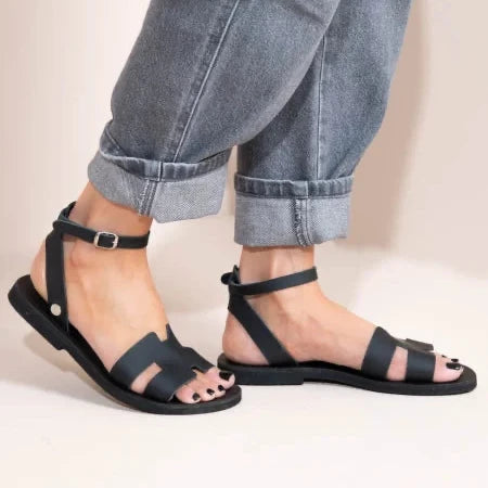 Phoenix Noir Γυναικεία Δερμάτινα Σανδάλια Μαύρα