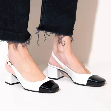 Coco Γυναικεία Δερμάτινα Γοβάκια Εκρού/ Μαύρο