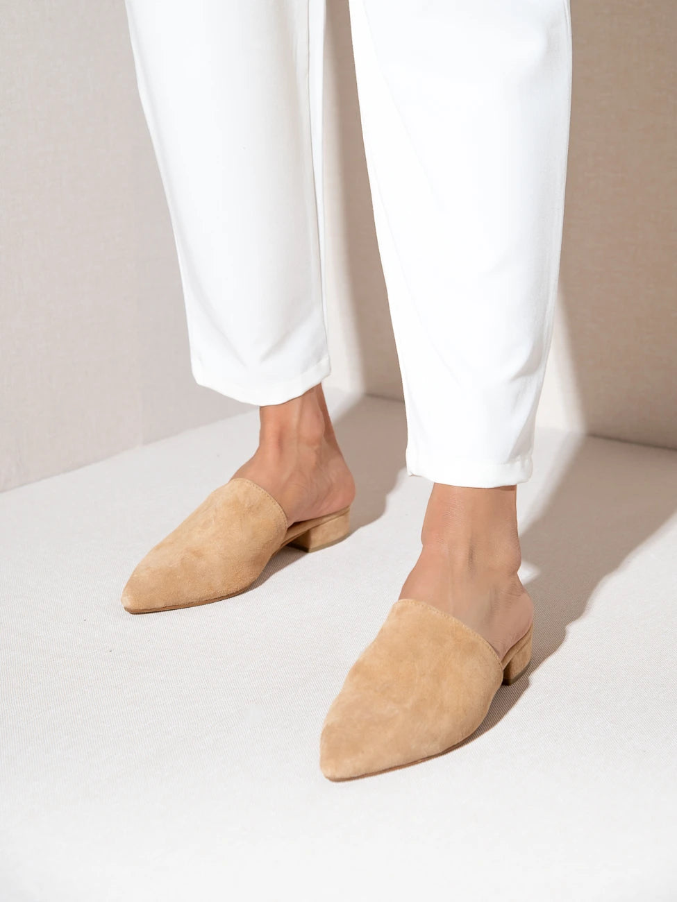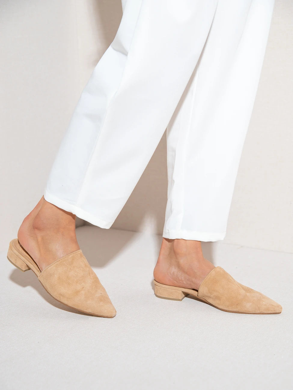 Γυναικεία Δερμάτινα Mules με τακούνι.